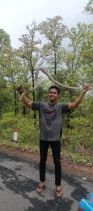 साप पकडायची काठी हातात धरून दुपारच्या या वेळी मला गावातल्या नवीन कोपऱ्यात बघून